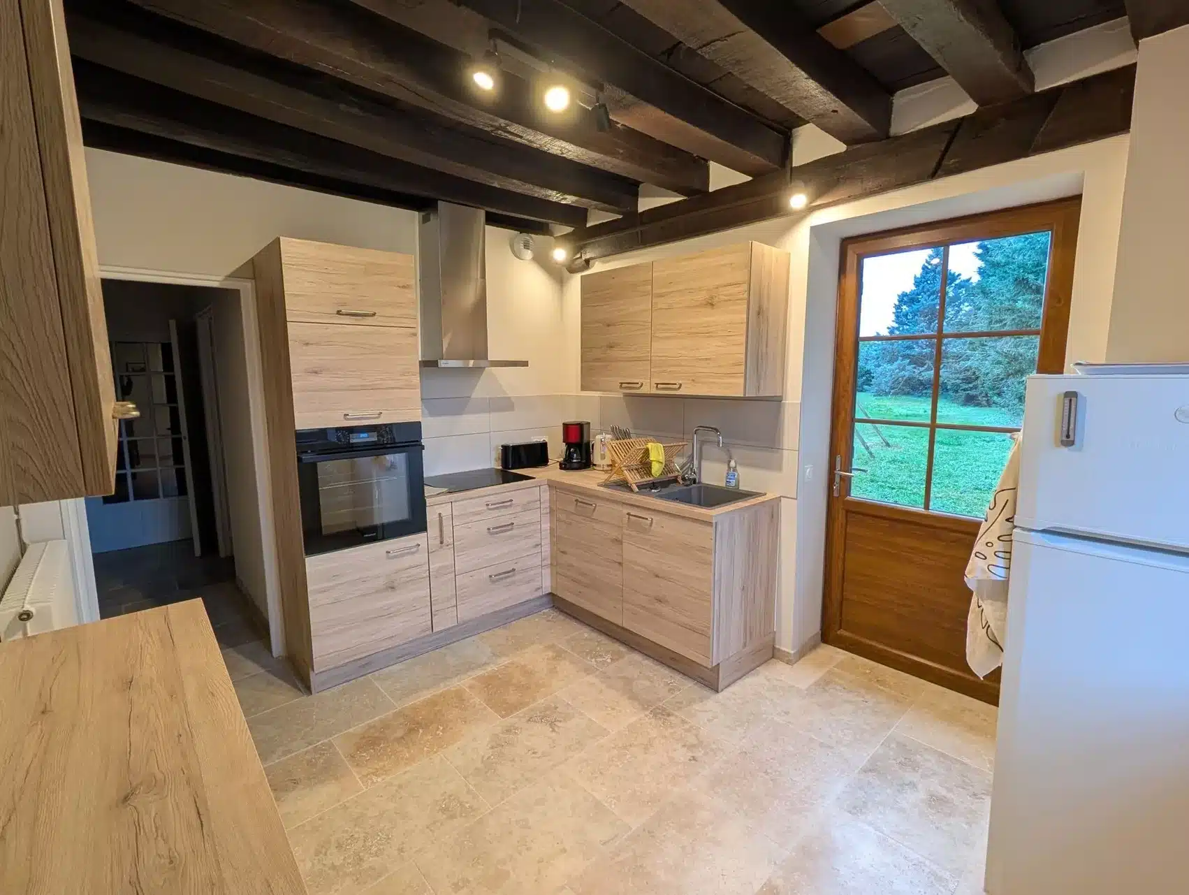 Plafond à la française, tomettes, gîte idéal pour des vacances en famille ou entre amis au calme et dans la nature.