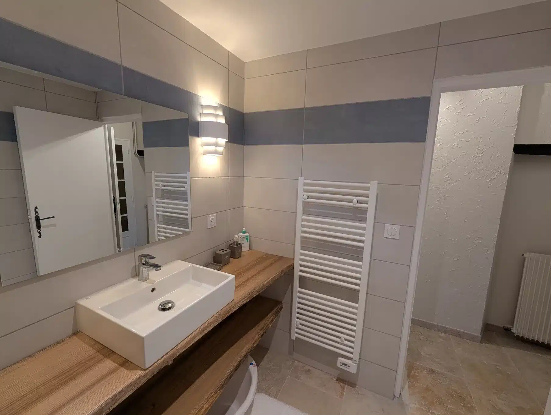 Possibilité de lit double d’appoint. Salle d’eau avec douche italienne, coin bureau lecture, équipement bébé.