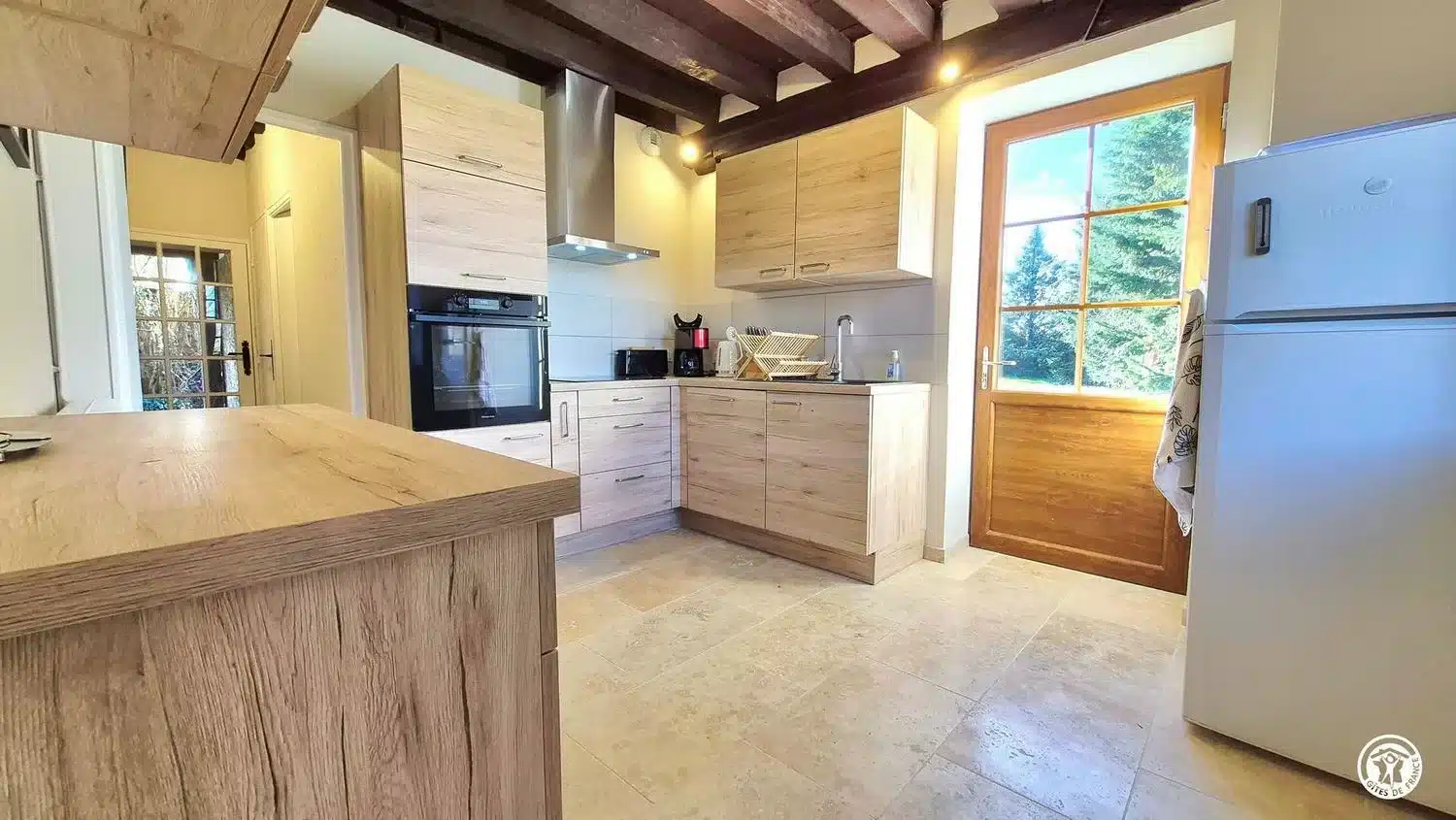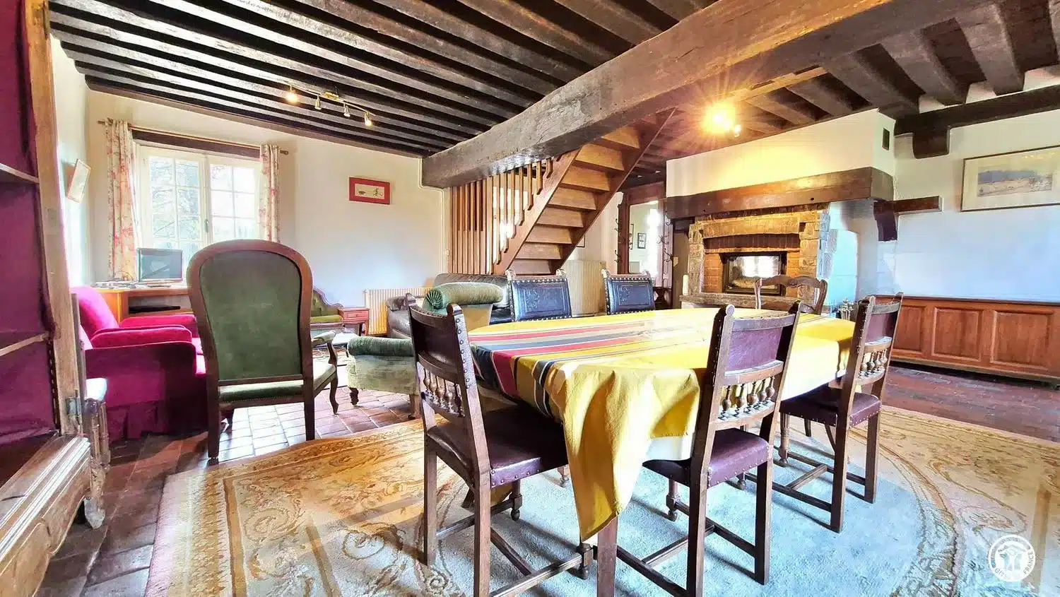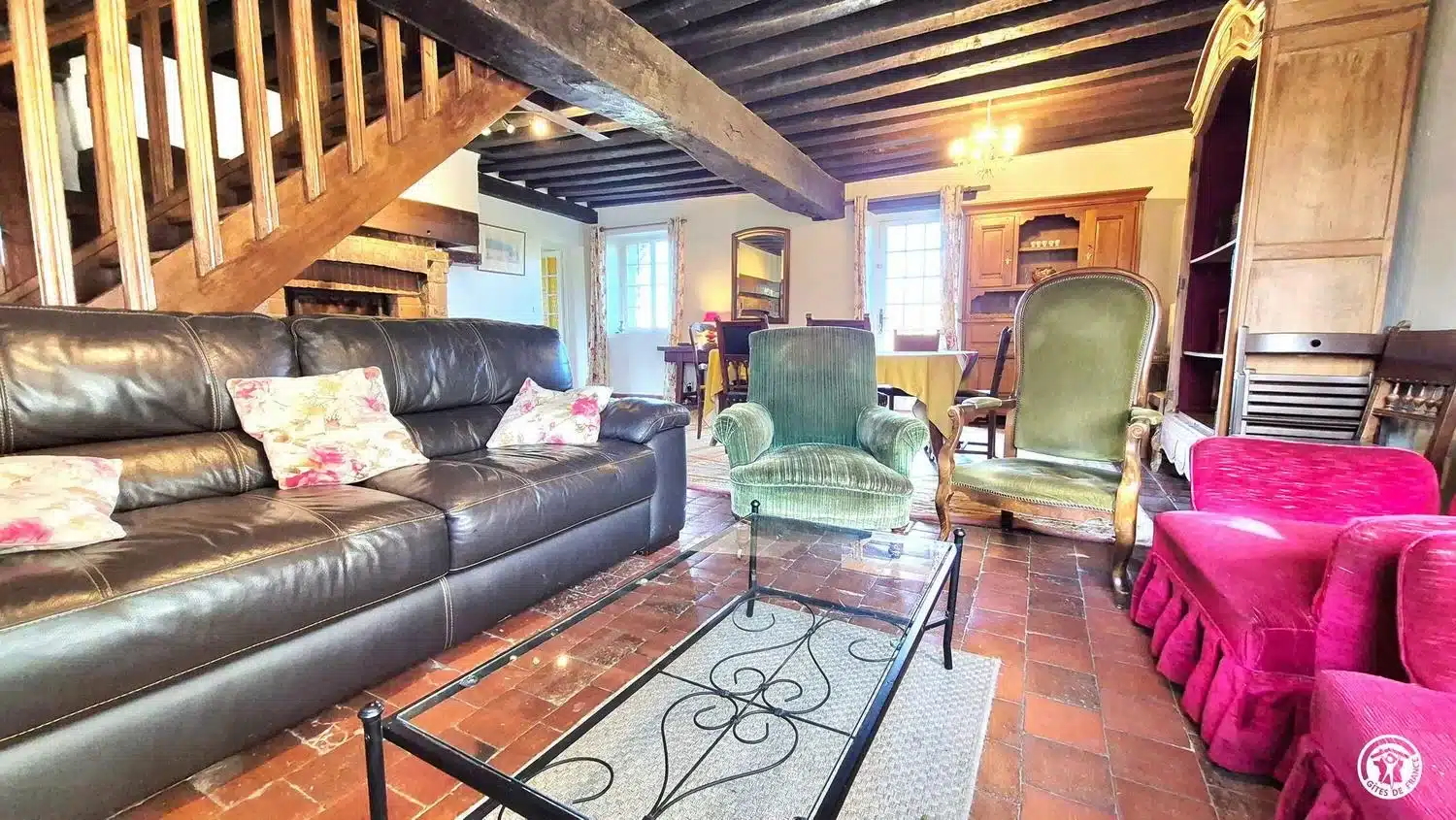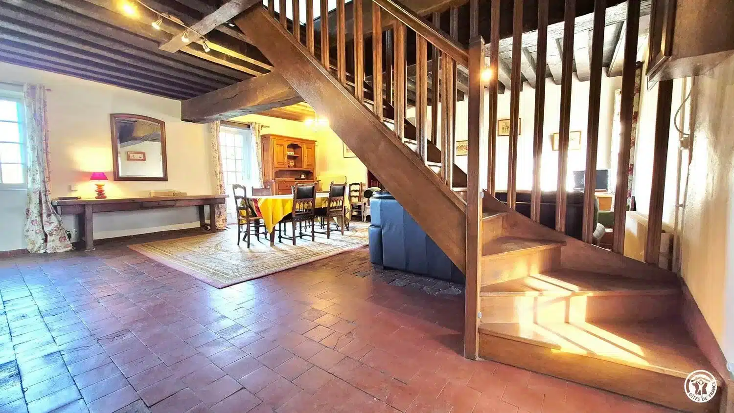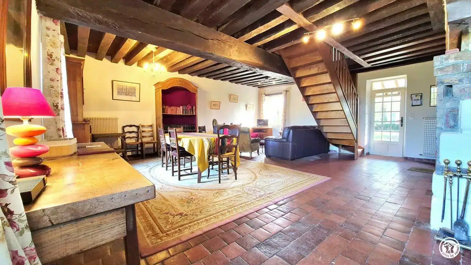 Plafond à la française, tomettes, gîte idéal pour des vacances en famille ou entre amis au calme et dans la nature.