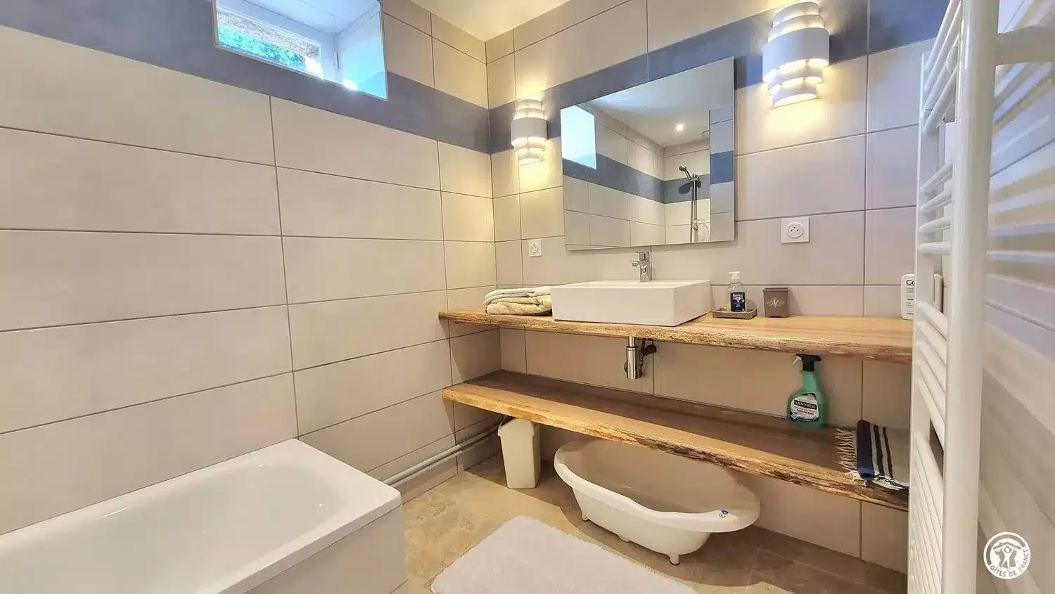 Possibilité de lit double d’appoint. Salle d’eau avec douche italienne, coin bureau lecture, équipement bébé.